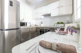 — холодильник, электрическая плита, духовка, электрочайник, микроволновая печь, посудомойка, кофемашина