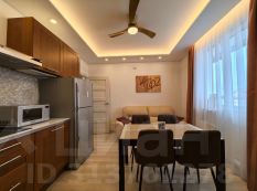 Квартира большая, продуманная до мелочей, есть все необходимое для проживания. Кровать с ортопедическим матрасом шириной 1.6 м в спальне, диваны раскладные со спальными местами 1.4 м и 1 м в гостиной, и 1.4 м на кухне.