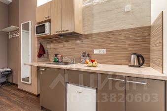 Оборудованная кухонная зона (холодильник, варочная панель, микроволновая печь, чайник)