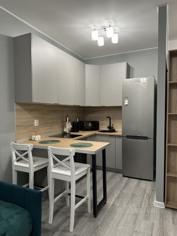 Имеется вся необходимая для жизни мебель. В спальне кровать 140/200, шкаф-купе. На кухне установлены духовой шкаф, варочная панель, угольная вытяжка, вместительный холодильник. В гостиной диван, который раскладывается на два спальных места.