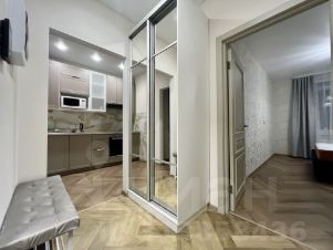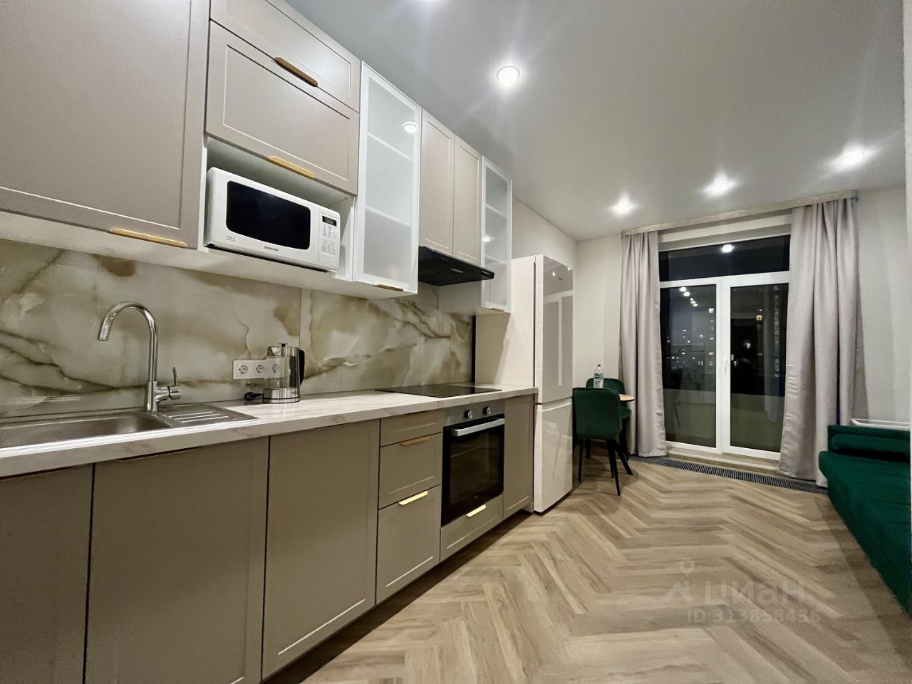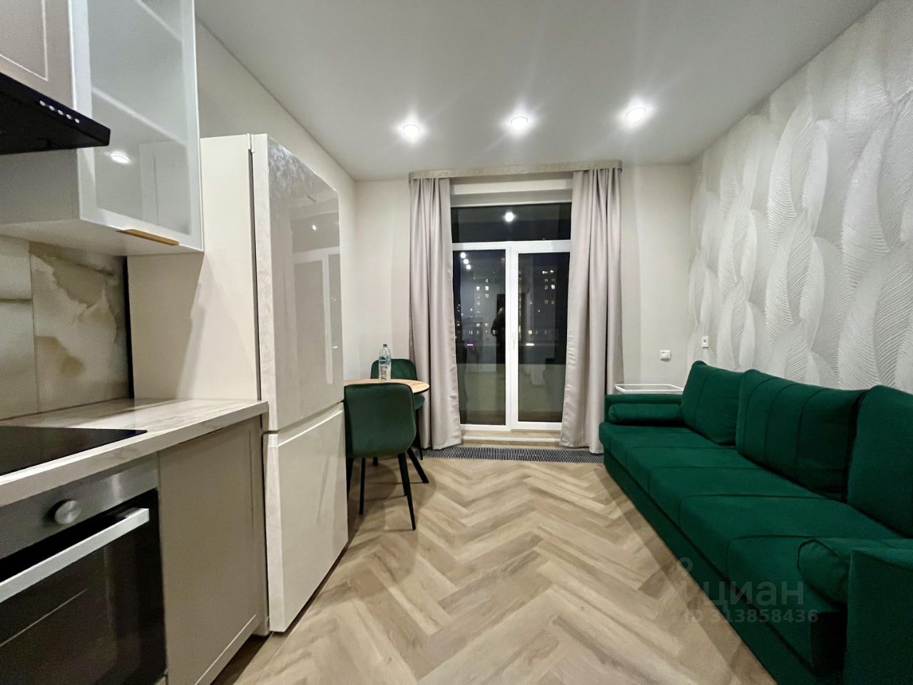 В квартире выполнен качественный евроремонт. Планировка включает одну комнату и совмещенный санузел с ванной. На кухне и в комнате есть вся необходимая мебель. Из техники в вашем распоряжении: холодильник, посудомоечная машина, телевизор и стиральная машина. Для удобства жильцов доступен интернет и имеется лоджия.