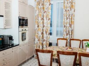 Превосходная кухня со всеми удобствами ,плита с 4 конфорками,духовка,микроволновка ,электрический чайник ,небольшой набор посуды,кофемашина,стиральная машина,диван,двухспальная кровать,.Все сделана для вашего комфорта .Вы можете спокойно готовить еду в свободное время ,если нет желание готовить мы предоставляем меню с нашего ресторана который находиться рядом,вы можете заказать еду и наш курьер доставит вам за 20 минут .Мы предоставим вам все необходимое для гигиены ( полотенцы,халат ,тапки ,постельное бельё ,одноразовые зубные щетки,мыло,зубная паста)Рядом все магазины в пешей доступности .