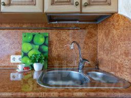 Большая 1 комнатная квартира в доме у метро, чистая, мебель из натурального дерева большая кровать 200*200, кожаный диван на кухне (не раскладывается), есть вся необходимая техника. До метро 3 мин пешком.