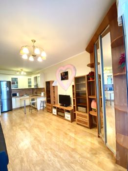 • Полностью меблирована: кухонный гарнитур с барной стойкой, компьютерный стол, раскладной диван с ящиками (спальное место 160х200), вместительные шкафы.
