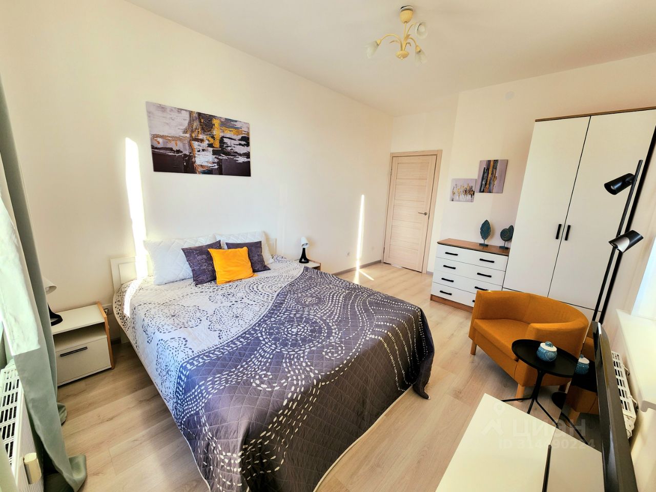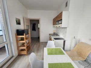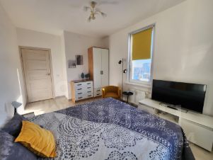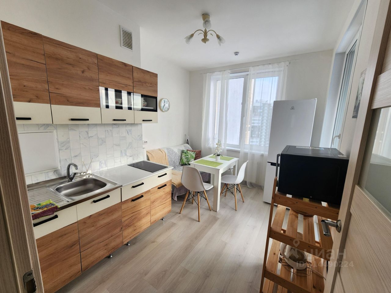 В наличии все необходимое для проживания: 2-спальная кровать, диван-кровать, шкаф, комод, тумбы, стулья, табуретки, кухонный гарнитур, индукционная плита, чайник, гладильная доска, сушилка для белья, холодильник, стиральная машина, роутер, телевизор, пылесос, микроволновка, утюг.