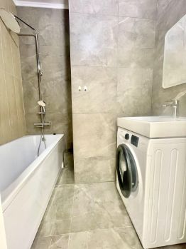 Двухкомнатная квартира с изолированными комнатами, раздельным СУ с теплым полом и застекленным балконом. Кухня оборудована всей необходимой техникой, есть стиральная машина.
