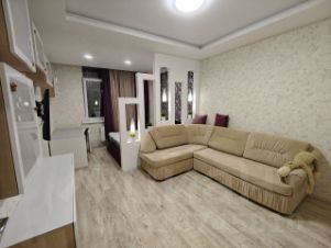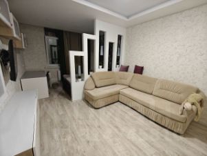 Квартира полностью меблирована: современная мебель на кухне и в комнате создаёт атмосферу уюта. Из техники есть всё необходимое для комфортного проживания — холодильник, телевизор в комнате, телевизор на кухне, посудомоечная и стиральная машины. В ванной комнате установлена ванна, поэтому можно расслабиться после рабочего дня. Также в квартире проведен интернет.