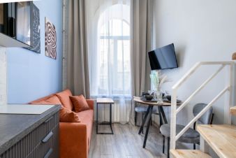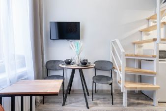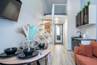 Современное оснащение: В студии есть все необходимое для комфортного проживания: новая мебель, полностью оборудованная кухня, высокоскоростной Wi-Fi, ЖК-телевизор, стиральная машина, фен.