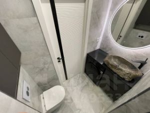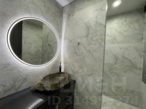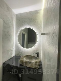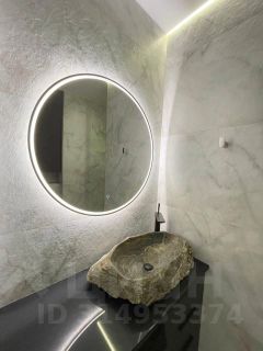 Ванная комната оборудована душевой кабиной. Столешница сделана из гранита, мойка из целевого камня Карелии .