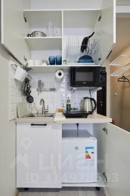 - Хорошо укомплектованная кухня: индукционная плита, чайник, микроволновая печь, холодильник, посуда и столовые приборы, обеденный стол и стулья с мягкими сиденьями.