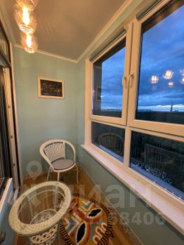 Просторная лоджия с панорамными окнами, с креслами и столиком для созерцания закатов над заливом.