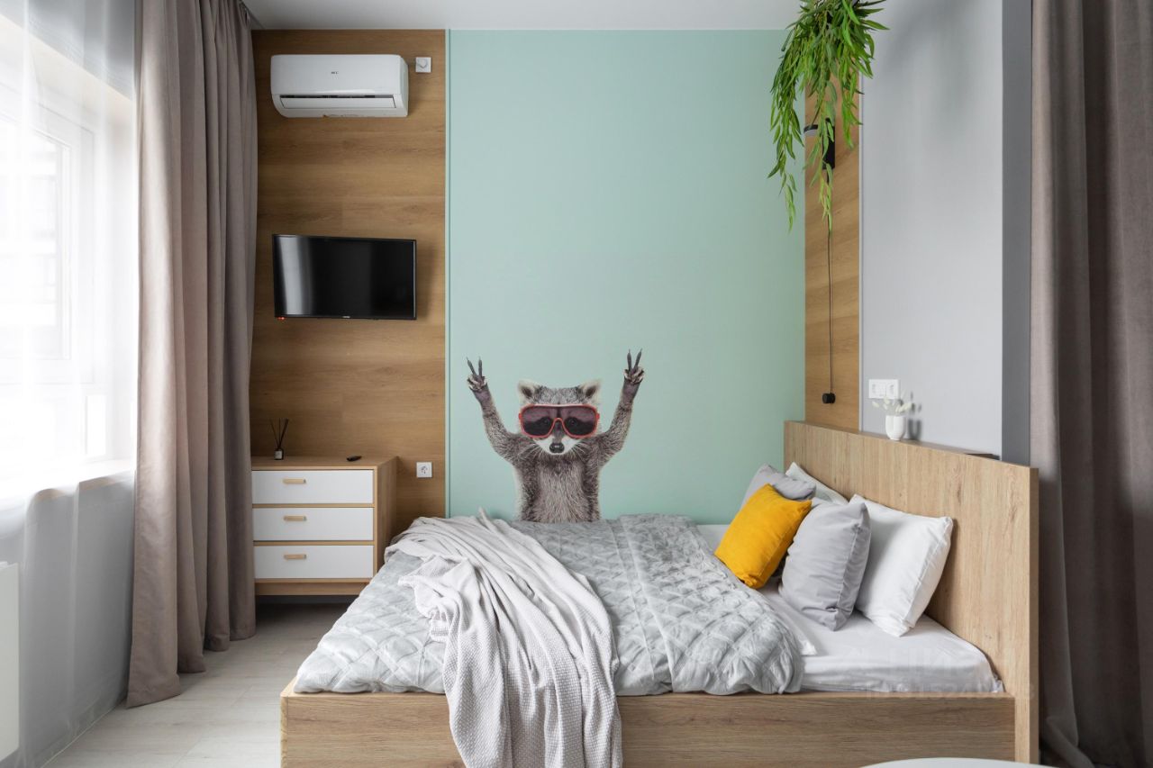 - Удобную большую двуспальную кровать с ортопедическим матрасом и свежим постельным бельем — идеальное место для полноценного сна и отдыха. Шторы блэкаут обеспечат комфорт даже в солнечные дни.