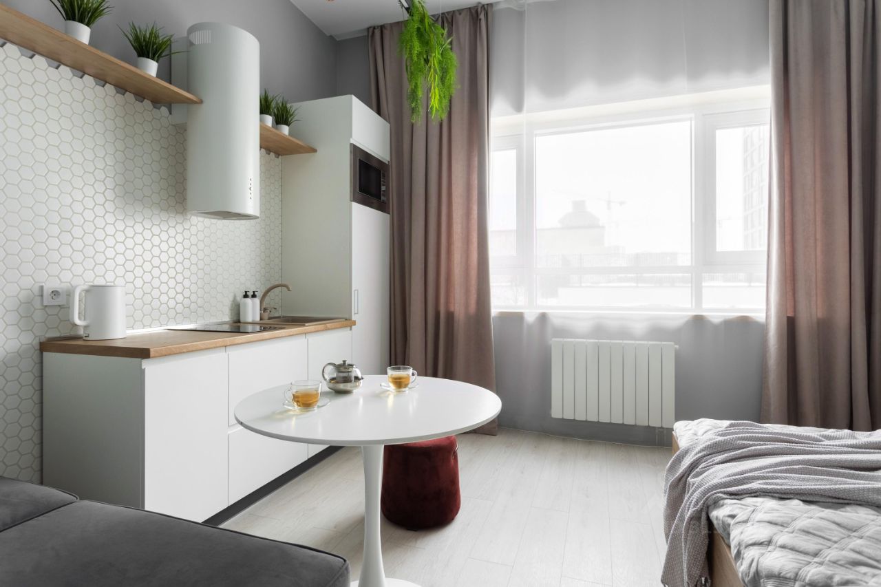 - Всю необходимую бытовую технику для вашего удобства: телевизор со Smart TV, кондиционер, стиральная машина, чайник, электрическая плита, микроволновая печь, холодильник, бойлер, фен, утюг, сушилка для белья и безлимитный Wi-Fi.