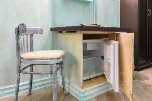 Все, что нужно для жизни: Полностью оборудованная кухня с мини-холодильником, микроволновкой и посудой позволит вам готовить любимые блюда, а ЖК-телевизор станет отличным развлечением после насыщенного дня.