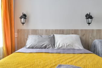 Интерьер студии выполнен с заботой о комфорте гостей. Здесь вас ждут удобная двуспальная кровать с ортопедическим матрасом, раскладной диван, ЖК-телевизор.
