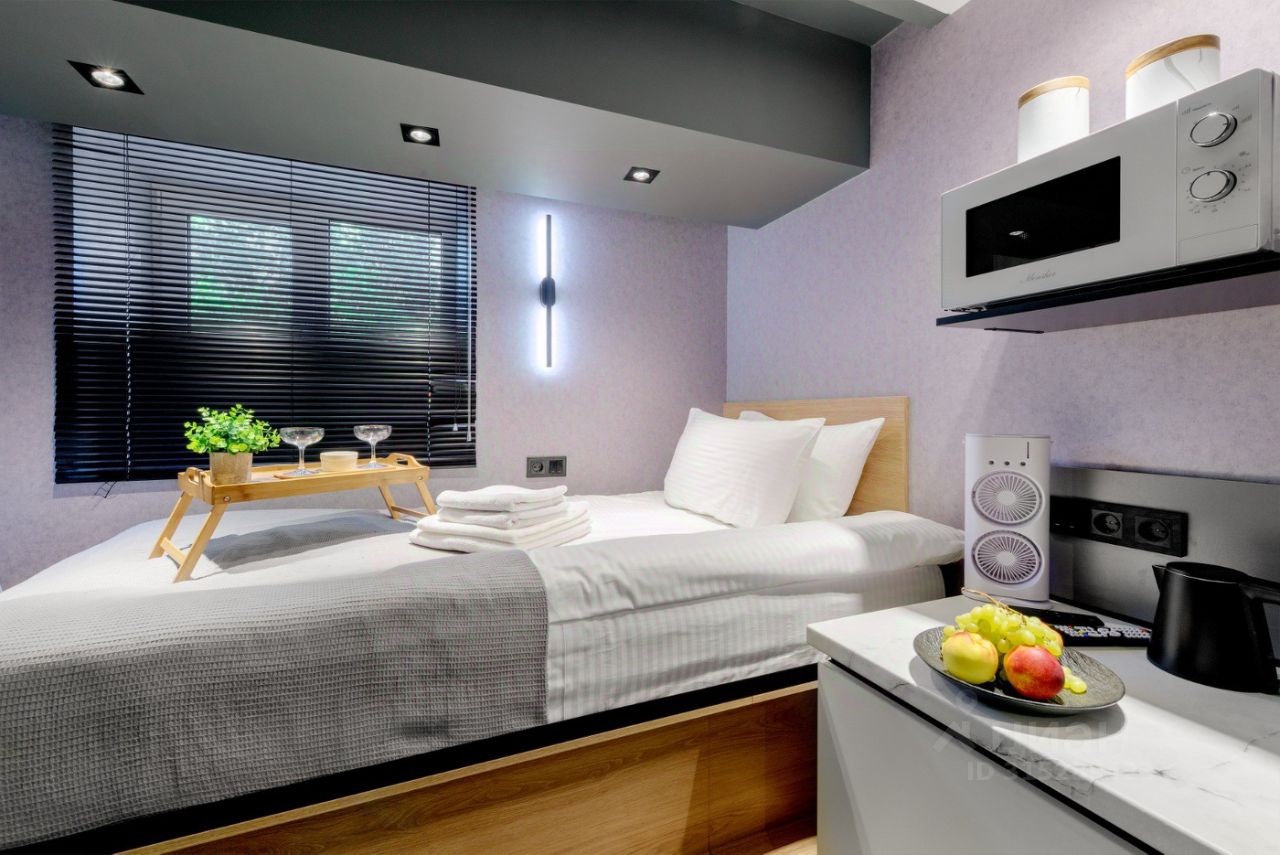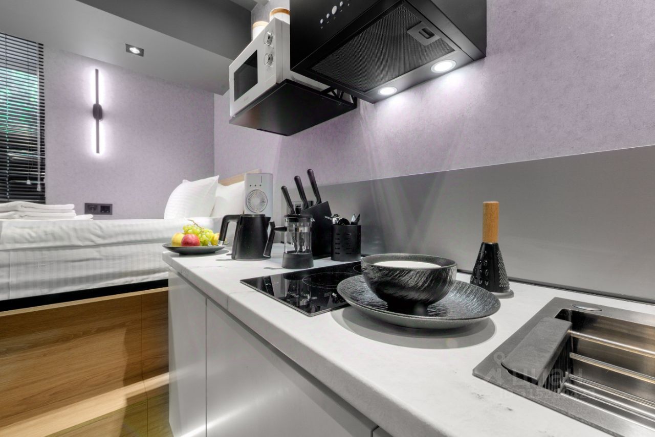 Апартаменты оснащенные всем необходимым для комфортного проживания и включают в себя спальную зону, кухню и собственную ванную комнату.