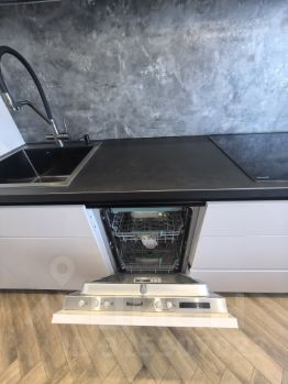 Квартира с дизайнерским ремонтом готова к проживанию. В просторной кухне-гостиной площадью 20 кв. м установлена встроенная кухонная мебель с техникой: холодильник, посудомоечная машина, духовой и стиральная машина, установлен фильтр для питьевой воды.