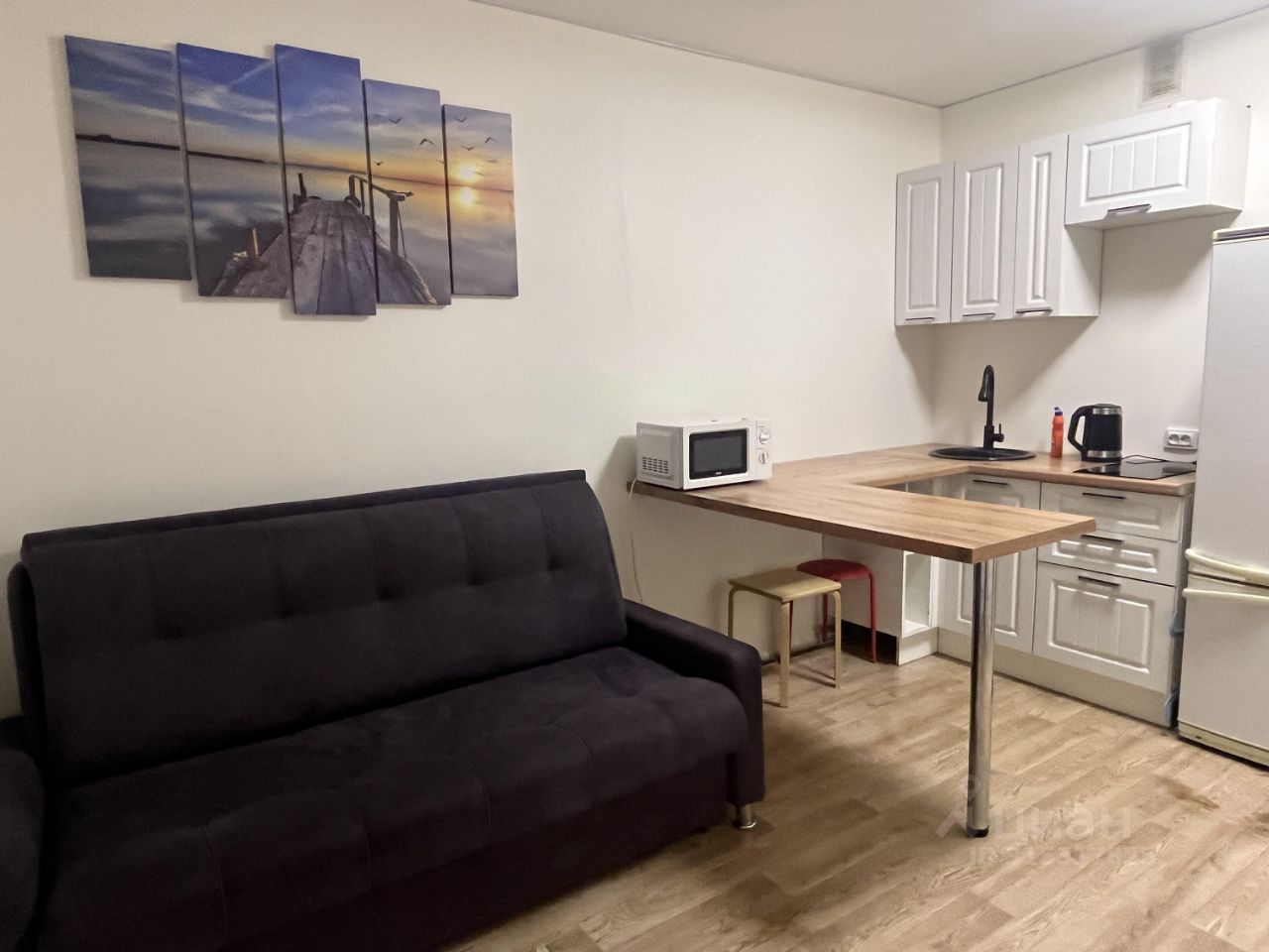 В квартире выполнен косметический ремонт, что создаёт свежую и приятную атмосферу. Для вашего удобства в студии есть вся необходимая мебель как на кухне, так и в комнате. Техника, такая как холодильник, телевизор и стиральная машина, также входит в оснащение. Санузел совмещённый, с душевой кабиной. Окна выходят на улицу, поэтому в квартире всегда светло и уютно.