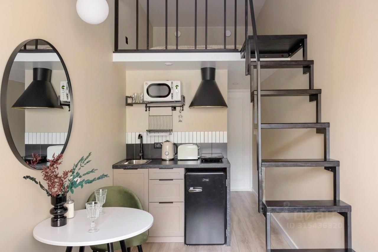 Небольшая, но уютная студия, есть все необходимое для комфортного пребывания на пару дней или на длительный период. Спальное место на втором ярусе. Комфортная ванная с душем.