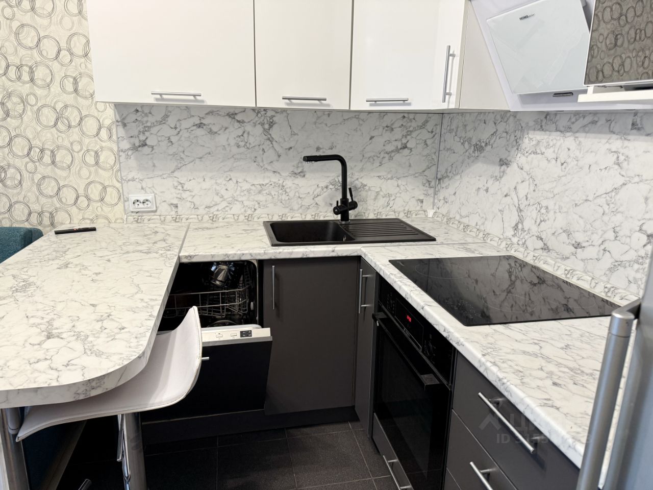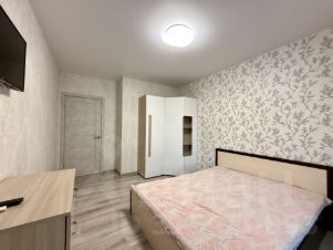 По планировке: кухня-гостиная, комната, большой коридор, совмещенный сан. узел, а также лоджия с панорамным остеклением, вид во двор! Кухня со всей необходимой техникой: холодильник, духовой электрический шкаф, посудомоечная машина, телевизор. Комната с 2-х спальной кроватью, матрасом, а также панорамными окнами!