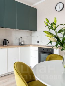 Кухня оборудована всем необходимым для постоянного проживания: есть кухонная утварь.