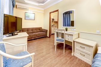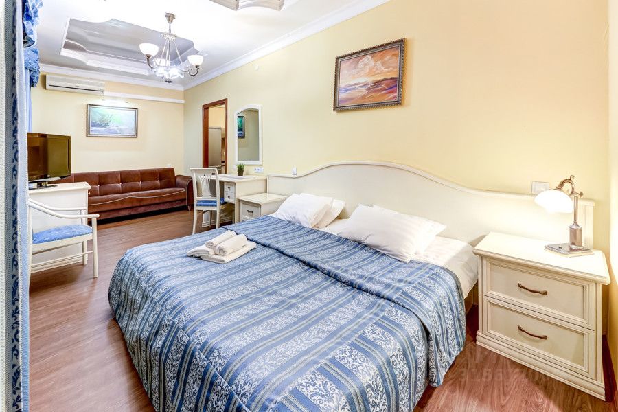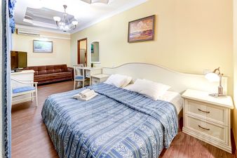 В этой просторной студии, расположенной в 150 метрах от ст. метро Садовая/Спасская и в 50 метрах от набережной канала Грибоедова, есть все необходимое как для краткосрочного, так и долгосрочного пребывания. После реновации номера в 2020 году в распоряжении гостей теперь не только двуспальная кровать, туалетный столик, зеркало, диван, телевизор, холодильник, шкаф-купе, прикроватные тумбочки (2 шт.), но и полностью оборудованная кухонная зона: чайник, микроволновая печь, электроплита. Окна-стеклопакеты, поэтому Вашему сну ничто не помешает. В ванной комнате находится душевая кабина или ванна, унитаз, раковина, фен.
