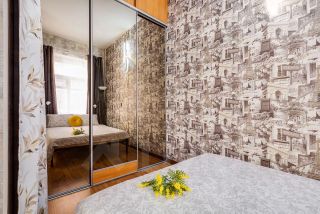 В спальне удобная двуспальная кровать с новым матрасом, большой вместительный шкаф-купе.