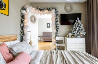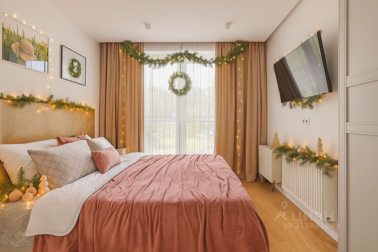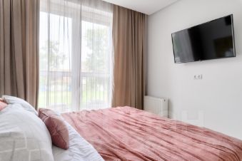 Апартаменты в ЖК "Царская столица" располагают спальней и кухней-гостиной и балконом с панорамным видом. Подходит для размещения 4 гостей (2+2).