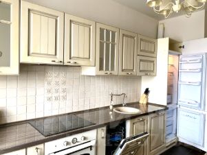 Просторная квартира в превосходном состоянии с качественным евроремонтом. Большая кухня площадью 11 кв.м оснащена всей необходимой мебелью и техникой, включая холодильник Indezit, посудомоечную машину Bosch, стиральную машину