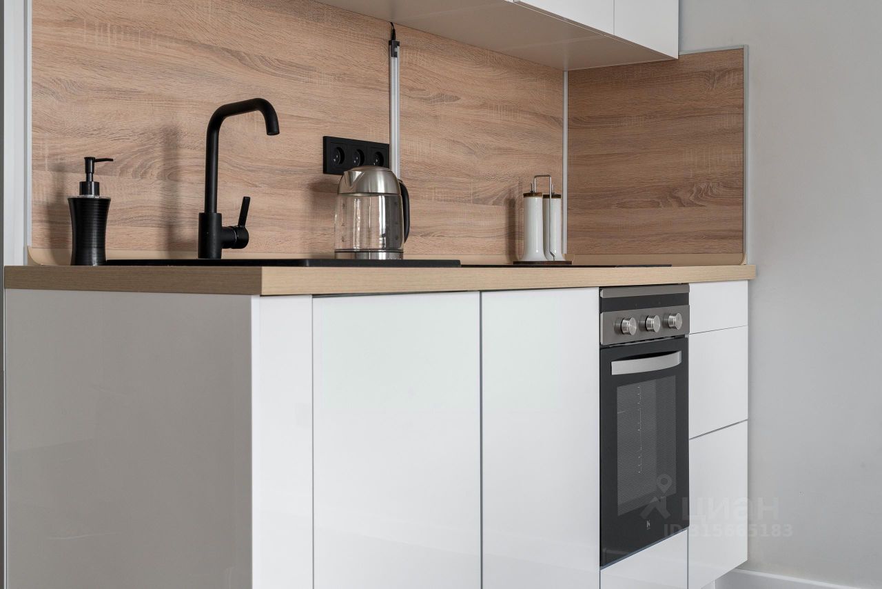Полностью оборудованный кухонный гарнитур с электрическим чайником, микроволновкой и всей необходимой посудой для приготовления, также обеденный стол и стулья.