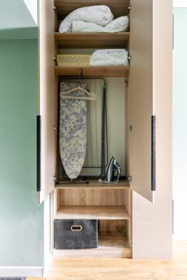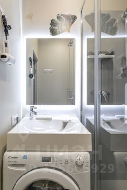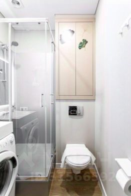Удобный санузел с душем и туалетом, а также стиральной машинкой.Также есть утюг и фен.