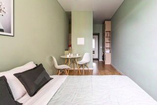 Комфорт и удобство: Студия оборудована всем необходимым для комфортного проживания. Удобная двуспальная кровать с ортопедическим матрасом, обеспечивающая качественный сон. ЖК-телевизор для вашего развлечения;