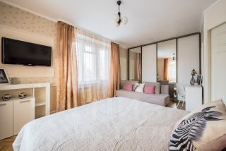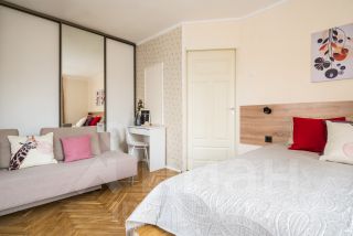 Спальня: Удобная двуспальная кровать с ортопедическим матрасом и раскладной дива, шкаф купе для хранения. Современный ЖК-телевизор для просмотра любимых программ и фильмов;