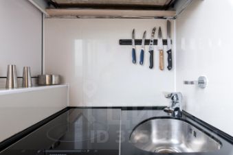-Кухонная зона: полностью оборудованный кухонный гарнитур с электрическим чайником, микроволновкой, холодильником и всей необходимой посудой для приготовления, также обеденный стол и стулья.