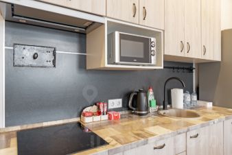 - В кухонной зоне: микроволновая печь, холодильник, посудомойка, чайник, посуда и столовые приборы на любой случай. Чай, кофе, сахар, соль, конфеты.