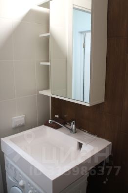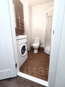 Просторная ванная комната оборудована: раковиной, электрическим полотенцесушителем, новой стиральной машиной Indesit, душевой кабинкой, настенным шкафчиком с зеркалом.