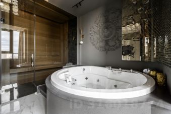 Рады предложить Вашему вниманию созданные компанией Домотелли уникальные апартаменты с роскошной атмосферой в современном классическом стиле. Изысканное сочетания зеркальной мозаики, лепнины, натурального камня, бархата и невероятных по своей красоте люстр и светильников!