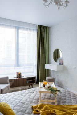 Комфортная и светлая квартира в тёплых тонах, расположенная в новом ЖК комфорт-класса — идеальный выбор для влюблённых пар, деловых гостей или семей.