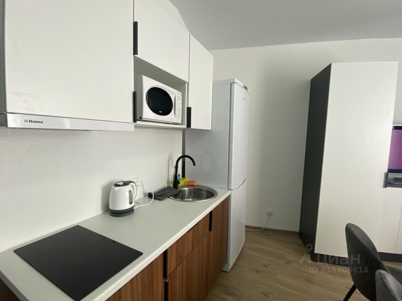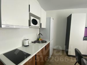 В студии есть отдельная кухня с плитои, холодильником, микроволновои печью и всеи необходимои посудои. Также в квартире есть ванная комната с душем и туалетом.