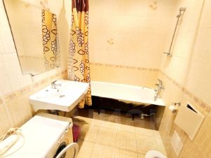 В квартире сделан дизайнерский ремонт, что создает стильную и современную атмосферу. В кухонной зоне есть вся необходимая мебель, а также холодильник и стиральная машина. Санузел совмещенный, оборудован ванной. Окна выходят во двор, поэтому в квартире тихо и уютно.