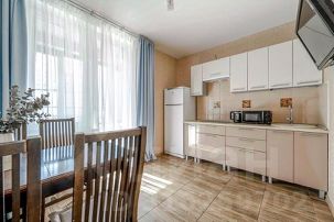 Кухня оборудована всем необходимым: электрическая плита, холодильник, электрический чайник, микроволновка, вся необходимая посуда для 4-х гостей и кухонные принадлежности.