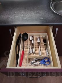 посуда и кухонные принадлежности для приготовления еды: кастрюли, сковорода, тарелки, стаканы, бокалы, столовые принадлежности).