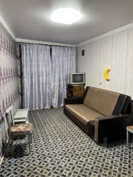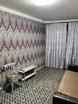 Комната сиреневая с диваном книжка дополнительно для удобства предусмотрен матрас. Окно Германия, обои производства Германии, коллекция Эрмитаж.ванна в моп на три человека в пользование и туалет. С/у раздельный. С ремонтом. Просторная кухня.Проживает два человека.