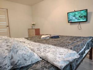 кровать двуспальная 160х200 с ортопедическим матрасом, диван раскладной двуспальный 150х200, две односпальные кровати, шкафы, мебель кухонная с посудомоечной машиной, кухонные приборы, средства личной гигиены.