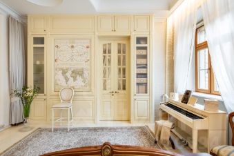 Изысканный интерьер, мебель ручной работы из массива дерева, шелковая обивка мебели и шторы, фарфоровая посуда, разнообразная бытовая техника, декоративный камин, пианино - все это относится в уровню максимального комфорта.