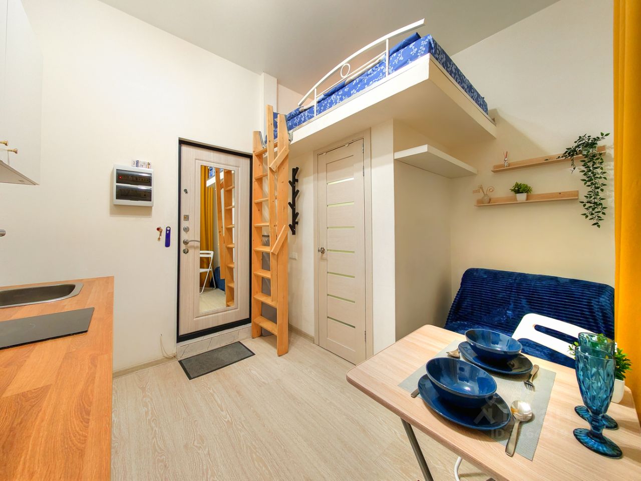 Студия оснащена всем необходимым для краткосрочного проживания.