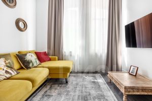 Общая площадь квартиры 58 м2. Высота потолки 3.3 м. В квартире дизайнерский качественный ремонт. Квартира расположена на третьем этаже (лифта нет). В квартире есть все, для комфортного проживания. Кухня полностью оборудована бытовой техникой (включая и посудомоечную машину). Стиральная машина установлена в отдельно бытовой комнате / кладовке. В спальне имеется просторная гардеробная комната. Телевизор в гостиной. Санузел раздельный: Отдельно туалет. Отдельно душевая кабина и 2 раковины. Имеется бойлер.