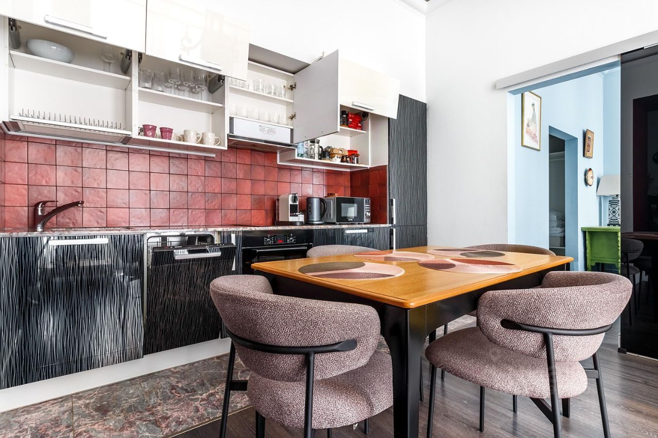 Квартира расположена в центре Санкт-Петербурга. Канал Грибоедова и Мойка, Исаакиевский собор, Невский проспект, множество достопримечательностей в пешей доступности от апартаментов. В самом доме, и вокруг него, расположены кафе, магазины и рестораны. Окна квартиры выходят в тихий, светлый внутренний двор.