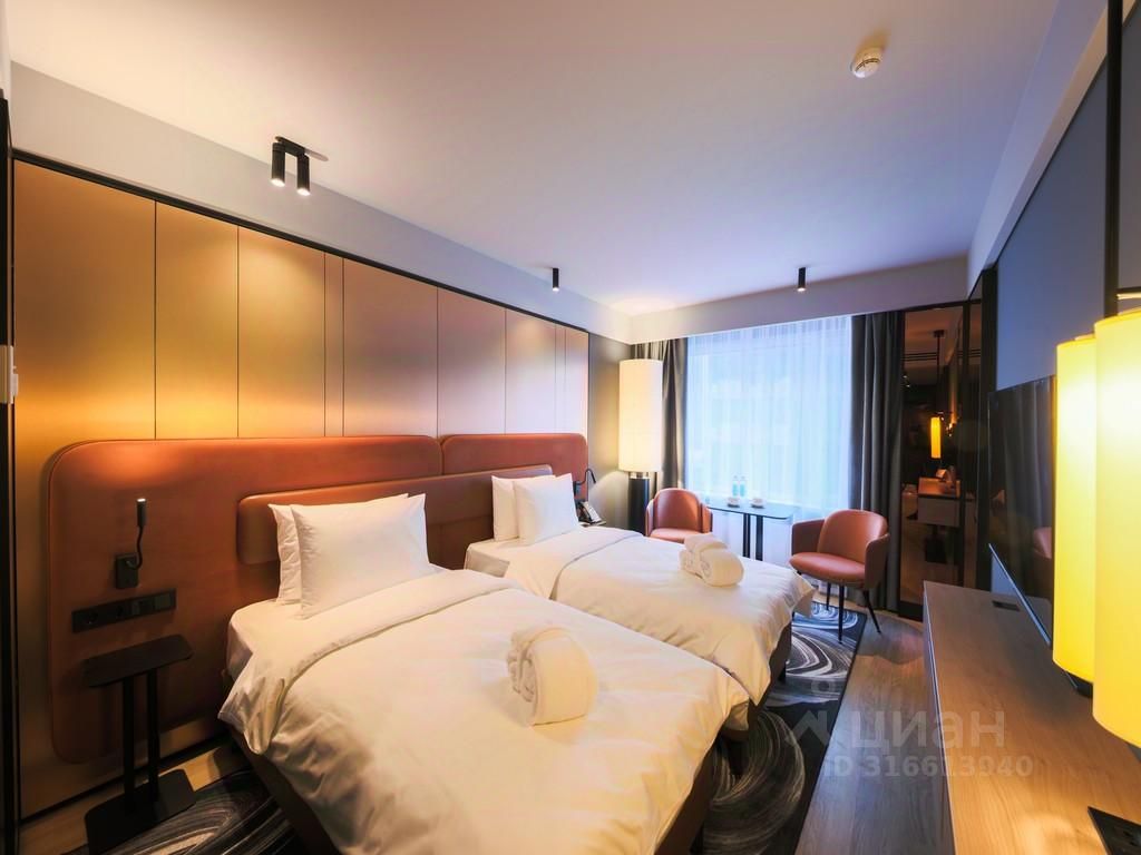 - Зона отдыха со столиком, креслами и панорамным окном. Большая кровать с ортопедическим матрасом, блэкаут шторы, ЖК телевизор, Wi-Fi. В номере также есть кондиционер.