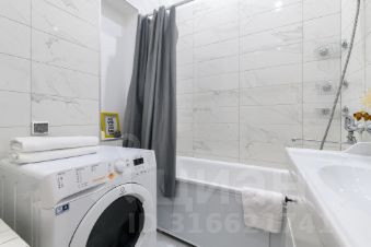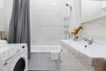 Современный санузел с ванной, стиральная машина, фен, тёплый пол (в коридоре, санузле, кухне)